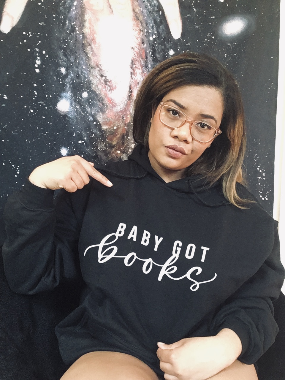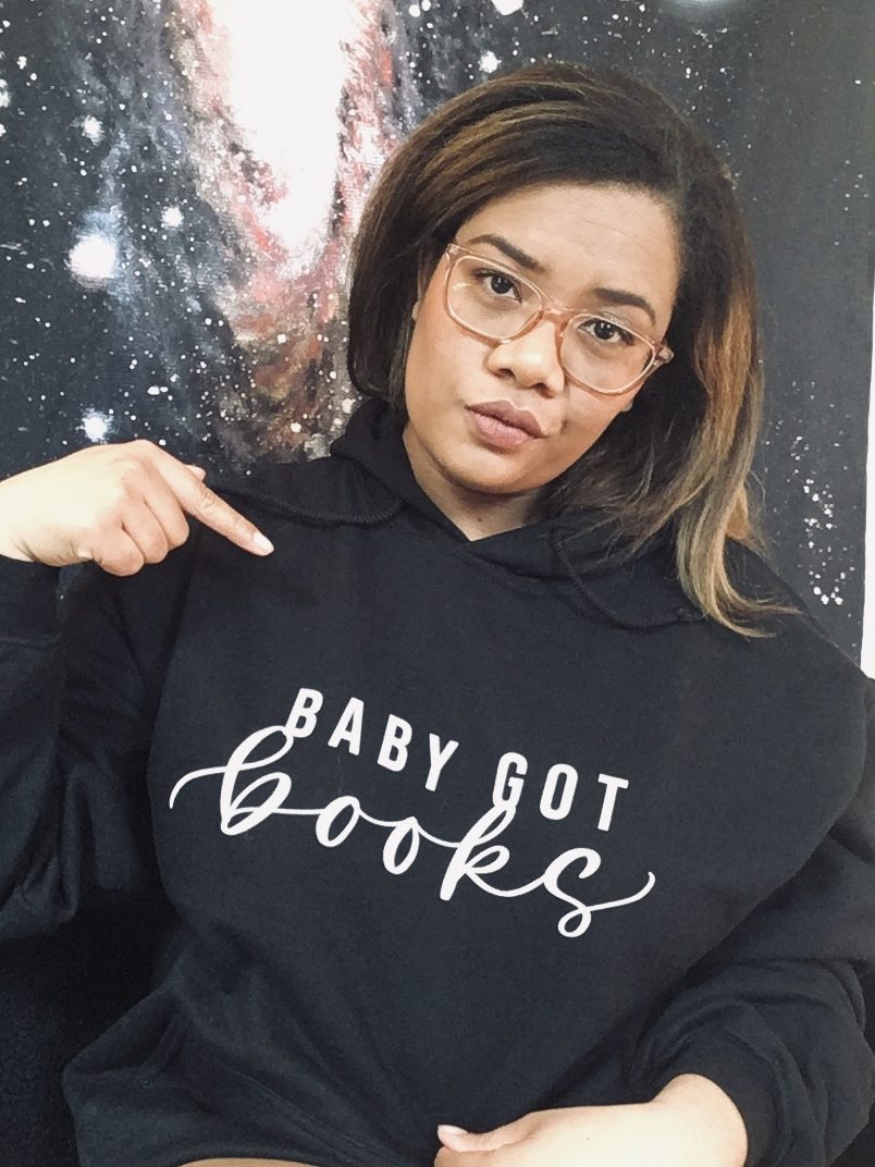 Hoodie: “Baby Got Books” also by Black Water Heart Designs.